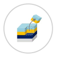 接下來是“晶體生長”。在這里,我們在晶圓上制作用于發光作為LED的薄膜。頂部是過程的俯視圖,底部是橫截面。在晶片周圍的高溫高壓環境下吹入氣體,并通過化學反應在晶片表面上沉積形成薄膜。這樣重復多次以制作多層薄膜結構。